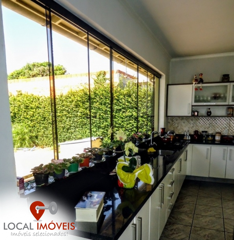 Ampla casa mobiliada com 4 dormitórios, sendo 1 suíte, sala de estar, sala de jantar, cozinha completa, área de serviço, garagem para 2 carros, quiosque com piscina, churrasqueira, jardim e pátio fechado na frente e nos fundos.