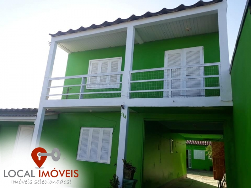 Composta por 02 casas na parte inferior, sendo ambas de 2 dormitórios, sala, cozinha, banheiro social, lavanderia, churrasqueira e vaga para 3 carros. Mais 01 apartamento de 2 dormitórios com suíte e um kitinet.