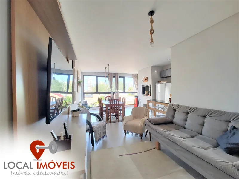 Apartamento mobiliado, 2 dormitórios (1 suíte), banheiro social, living 2 ambientes, churrasqueira, cozinha, área de serviço e vaga para carro.