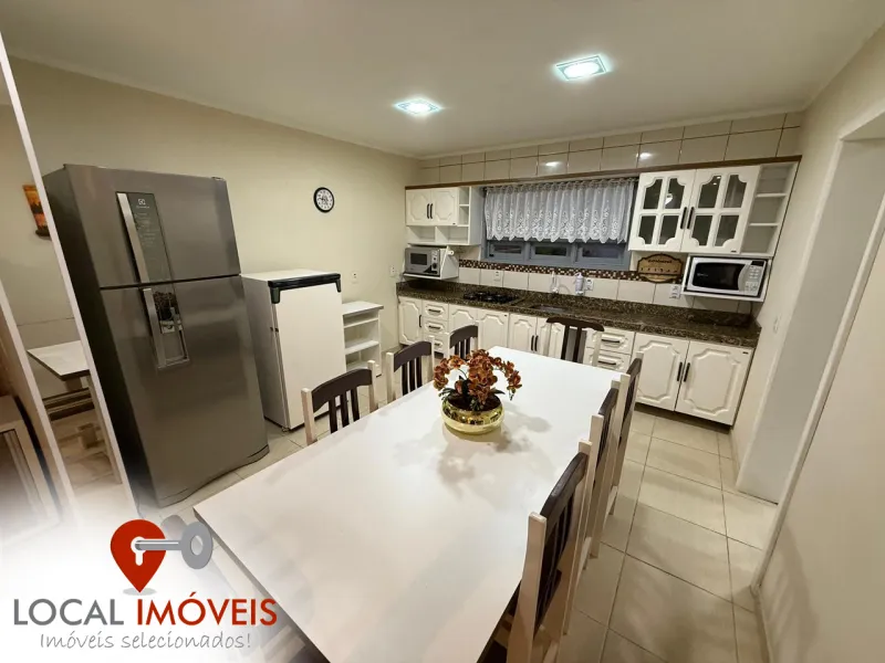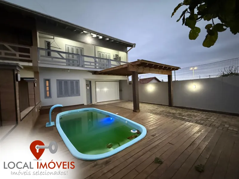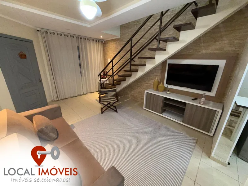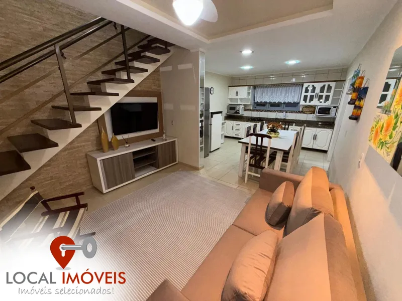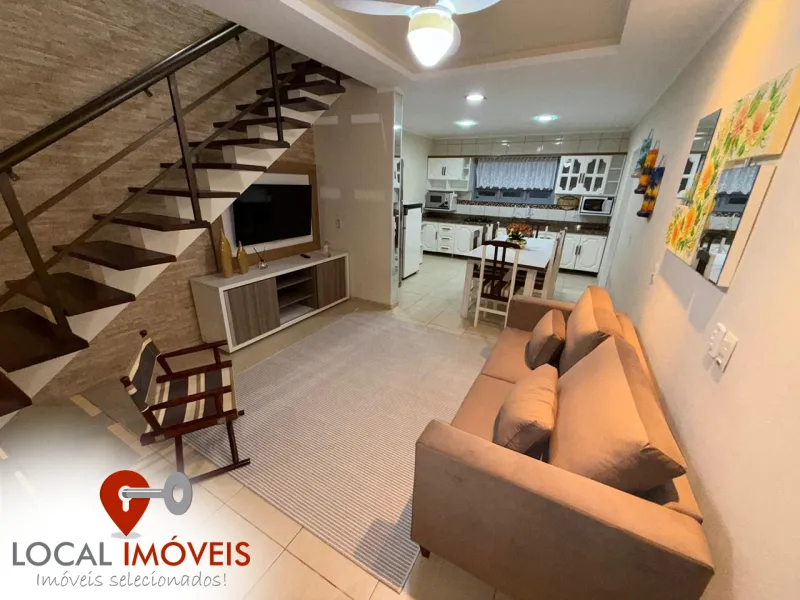 Duplex mobiliado, 4 dormitórios, 2 banheiros, living 2 ambientes, cozinha, churrasqueira, garagem para carro, piscina, pátio frente e fundos cercado.