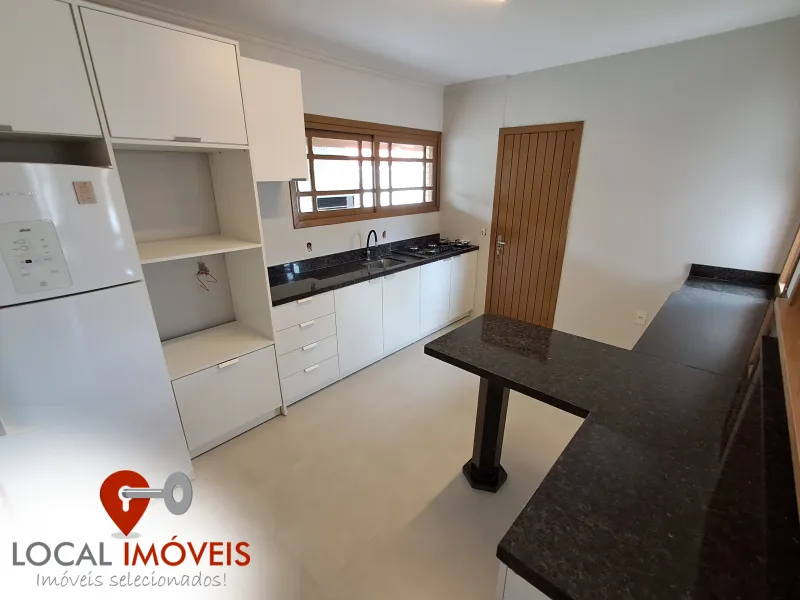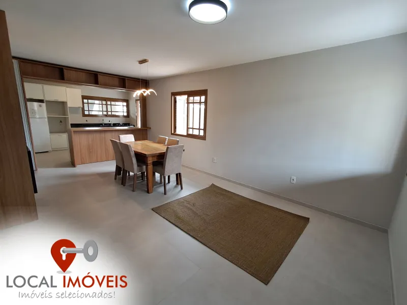Semi mobiliada, 3 dormitórios (1 suíte), banheiro social, escritório, living 2 ambientes integrado com a cozinha, churrasqueira, área de serviço. Forro laje.