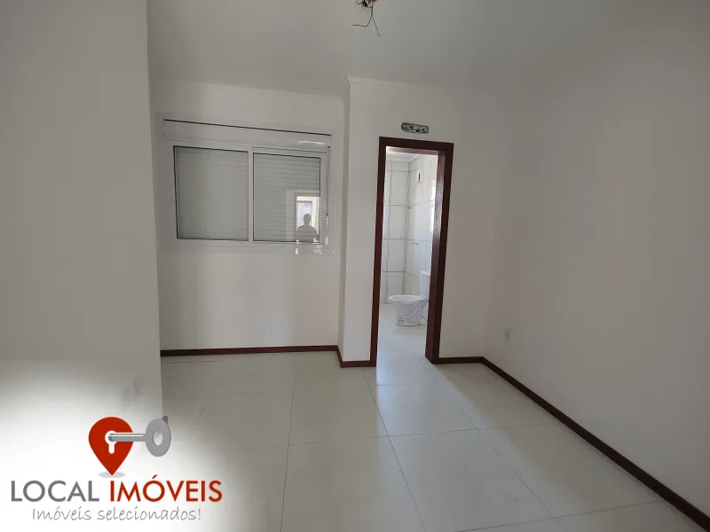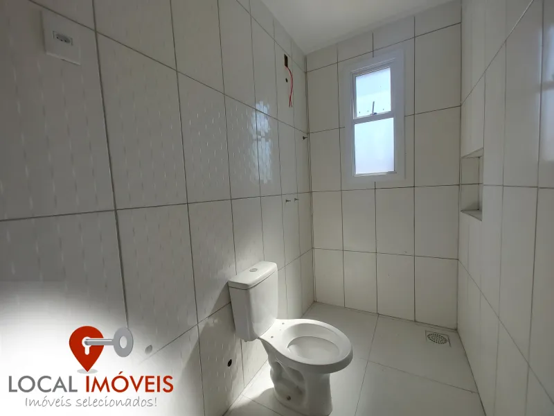 Aberturas em alumínio anodizado, piso porcelanato, espera para água quente e split.