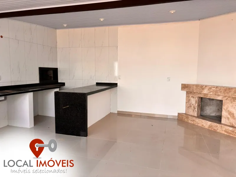 Anexo com espaço gourmet, churrasqueira e lareira.