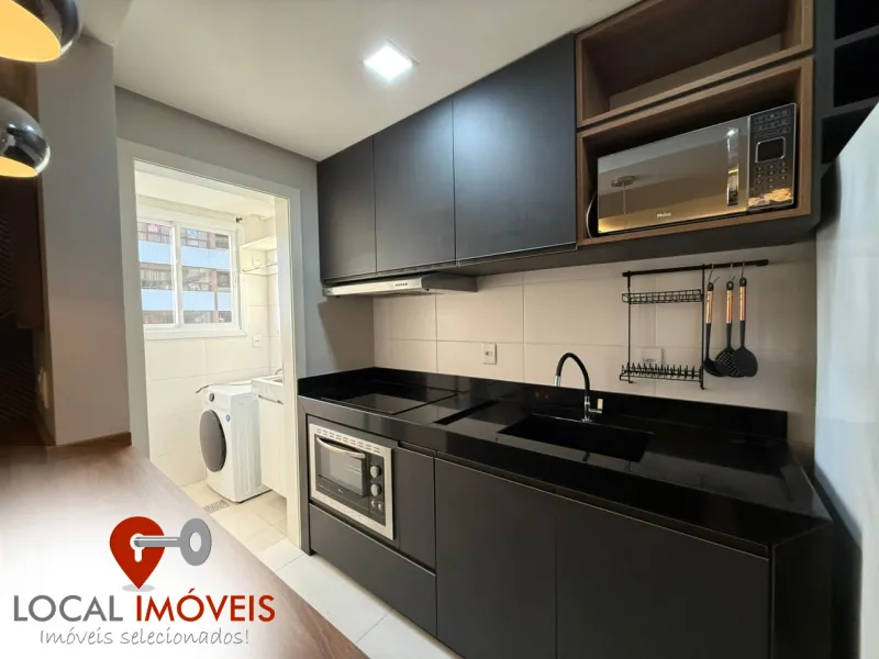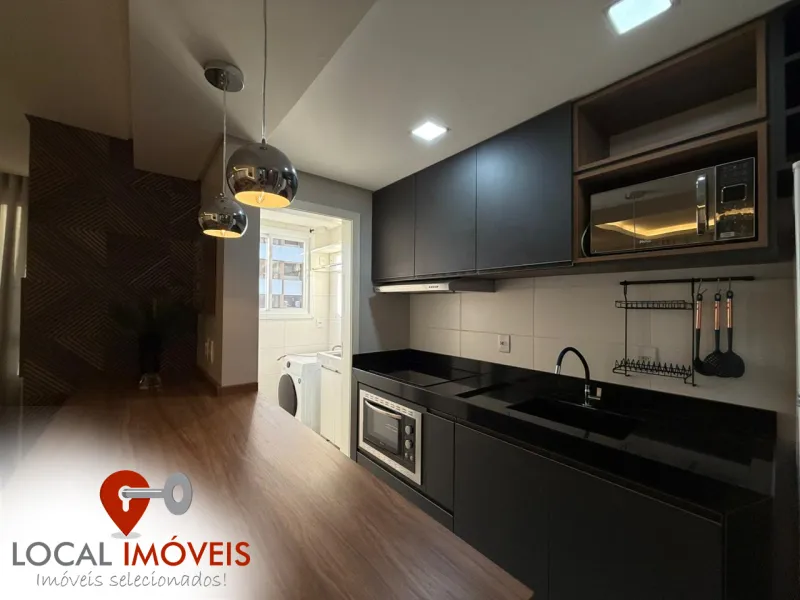 Mobiliado, 2 dormitórios (1 suíte), amplo living 2 ambientes com churrasqueira, cozinha estilo americana, área de serviço fechada, vaga para carro.