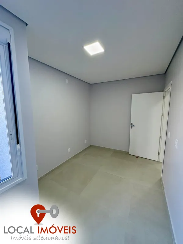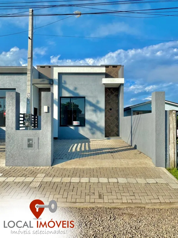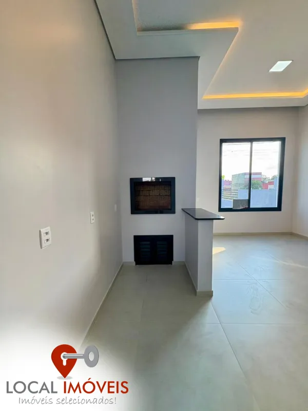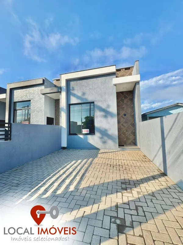 Casa geminada 2 dormitórios (1 suíte), banheiro social, living 2 ambientes, cozinha, área de serviço, churrasqueira, estacionamento.